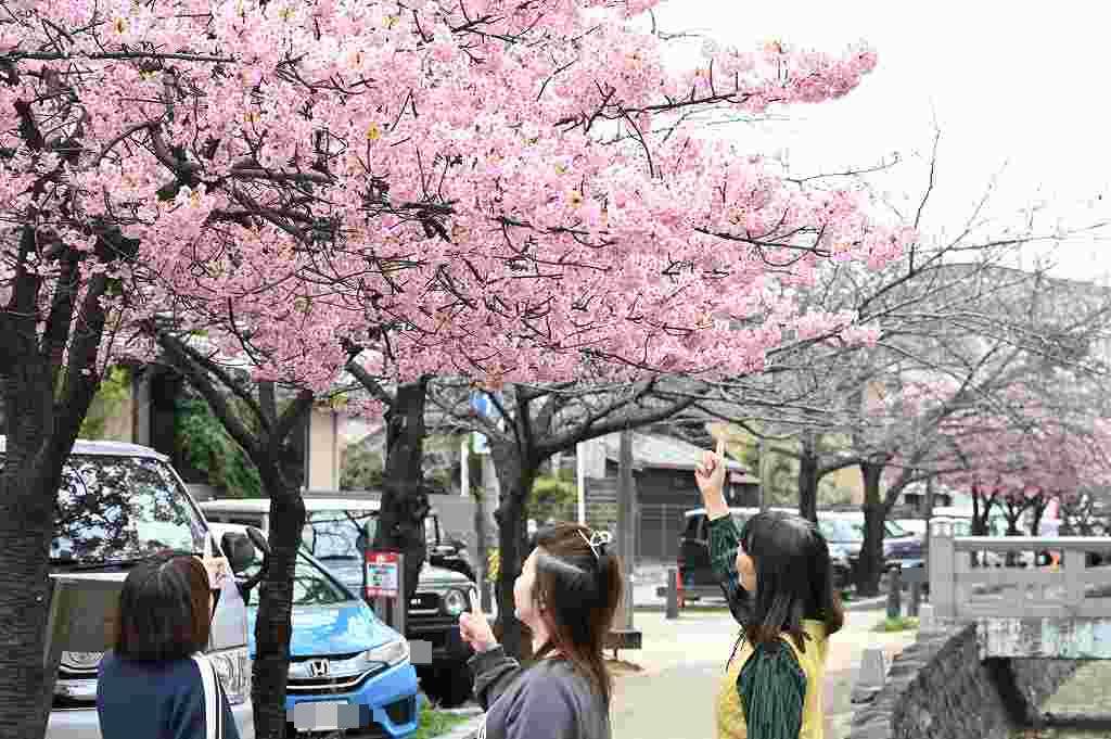 寺町商店街で3月14、15日に河津桜まつりがあるので行ってみてください。