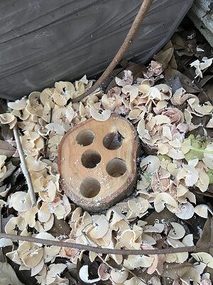 枝、幹を切り落とし、根本にドリルで穴をあけ、(必要なら中へ除草剤を浸透させて)